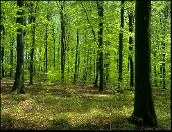 Der Wald beginnt dichter zu werden. Mächtige Baumkronen bilden ein Dach ...